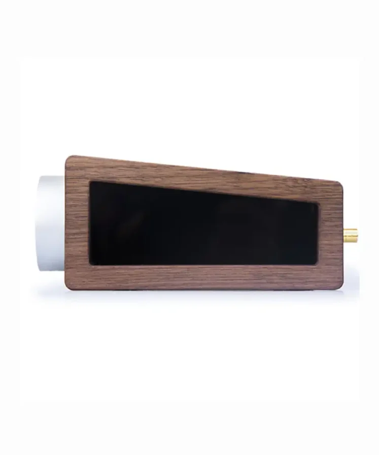 Its unique design—featuring a large, original volume knob, an angled top, and wooden side panels—makes the Bacillus II a stylish addition to any desk.